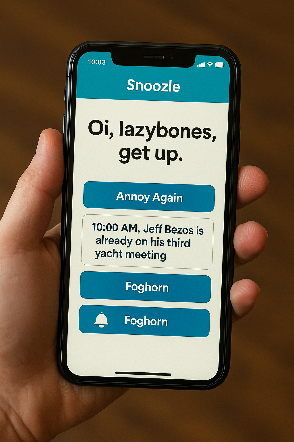 The app, already being dubbed “the Uber of unwanted morning interventions,” connects to the recipient’s smart devices, playing a carefully curated selection of sounds designed to get even the most determined lie-in enthusiast out of bed.